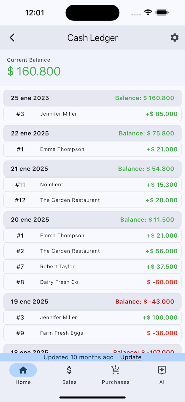 - Cash Ledger: Track your available cash and monitor your business cash flow in real time.