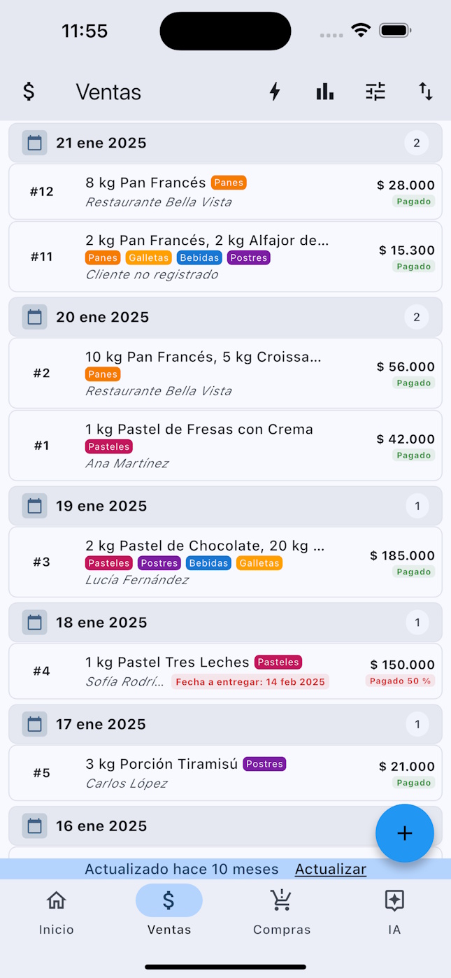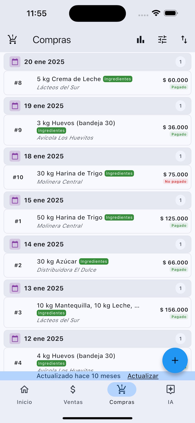 - Gestión de ventas y compras: Registra productos vendidos o comprados, precios, métodos de pago y fechas de entrega.