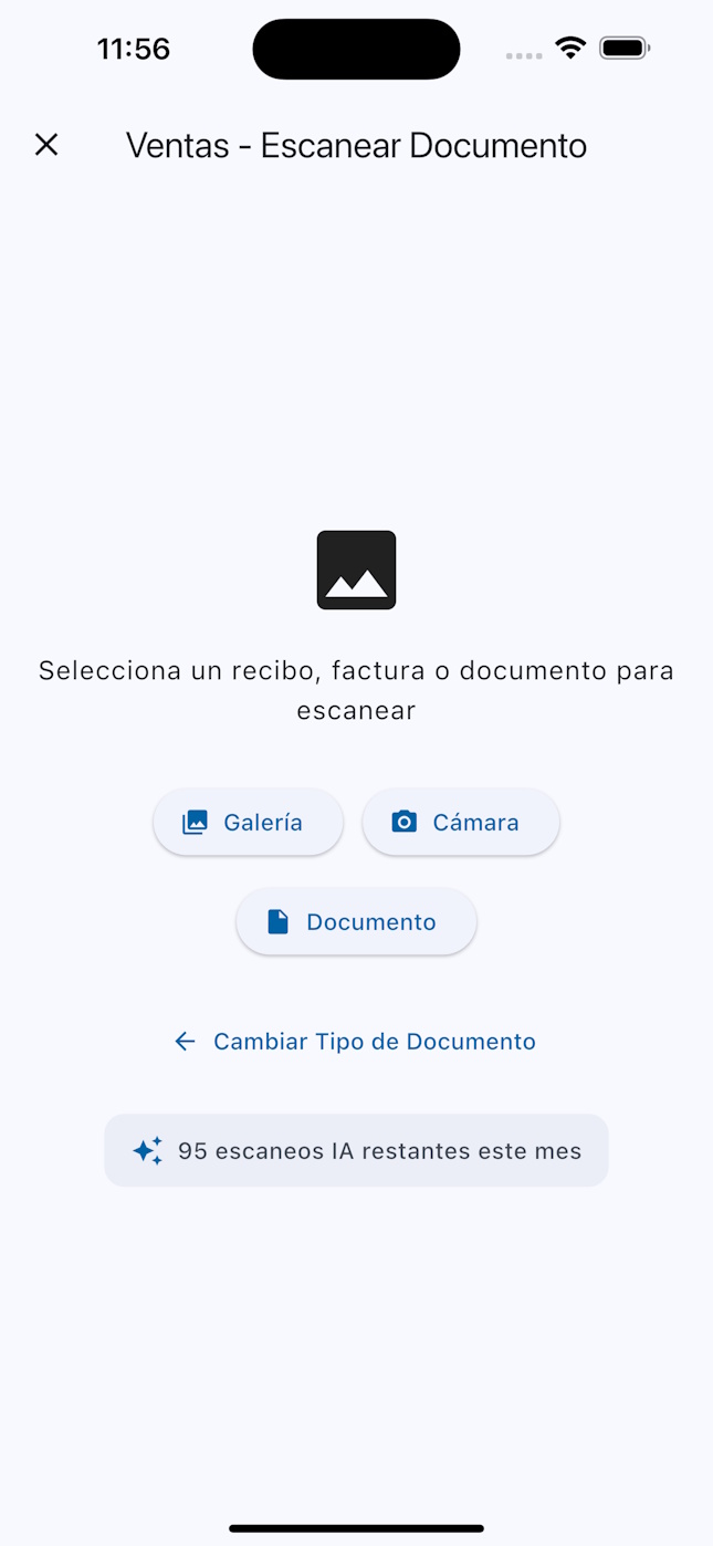 - Escaneo de documentos con IA: Usa herramientas inteligentes para escanear y digitalizar facturas y recibos rápidamente.